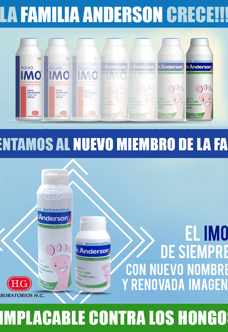 Durante muchos años la familia Anderson con sus productos Talco Dr. Anderson de 120 y 240 gr, Colonia Refrescante Dr. Anderson, Jabón Refrescante Dr. Anderson han contibuido al bienestar y confort familiar aportando frescura diaria a sus consumidores. Por este motivo, la familia Anderson ha invitado a IMO POLVO® a formar parte de su noble, seguro y efectivo grupo de integrantes.